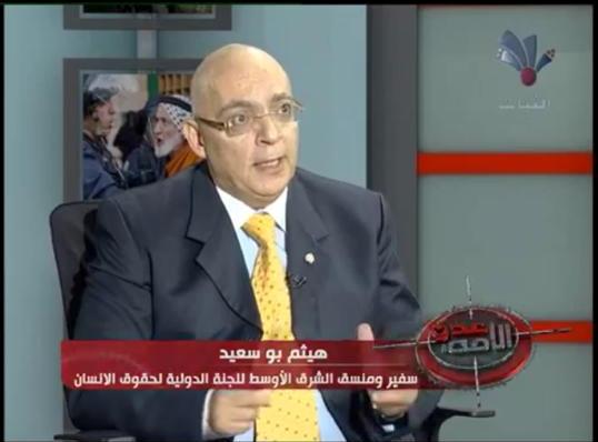 اللجنة الدولية لحقوق الإنسان ترفّع السفير ابو سعيد إلى رتبة مفوّض الشرق الأوسط أعلنت الجنة الدولية لحقوق الإنسان أنه تمّ ترفيع المنسق للشرق الأوسط السفير الدكتور هيثم ابو سعيد إلى مفوّض الشرق الأوسط. وأشارت اللجنة أنه سيتم ايضا تعيين منسق جديد وثلاثة من المساعدين لمؤا