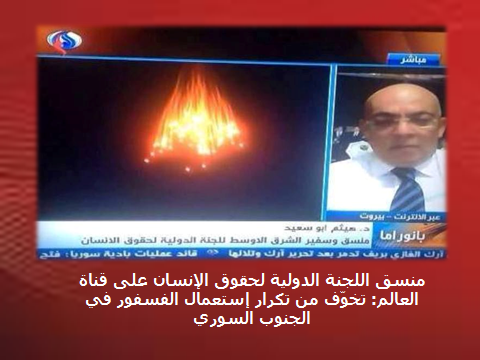 منسق اللجنة الدولية لحقوق الإنسان على قناة العالم: تخوّف من تكرار إستعمال الفسفور في الجنوب السوري